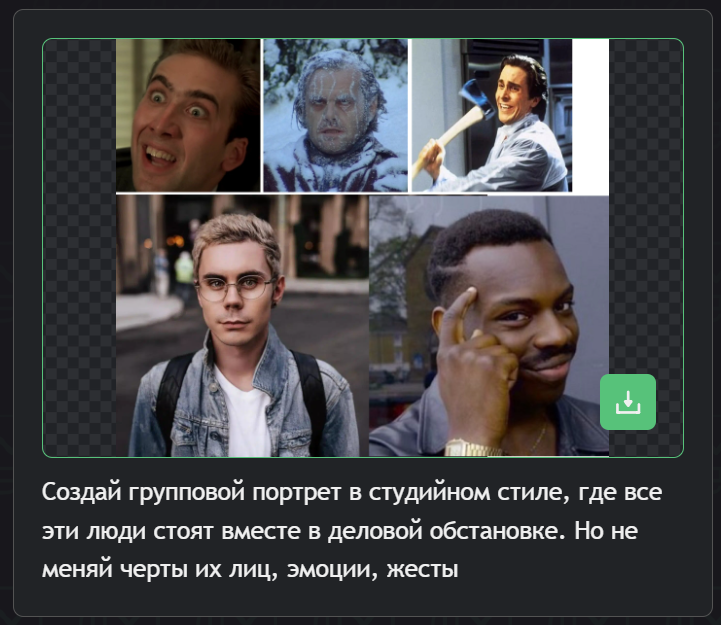 Загрузите обычное фото и попросите: "Преобразуй это фото в стиль аниме" или "Сделай из этого фото студийный портрет"