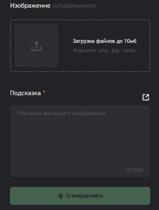 Создание картинки занимает всего 10-40 секунд. Иногда при высокой нагрузке могут быть задержки или ошибки — просто повторите попытку.